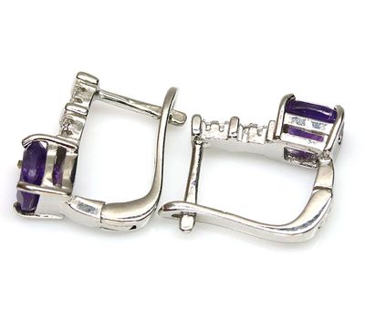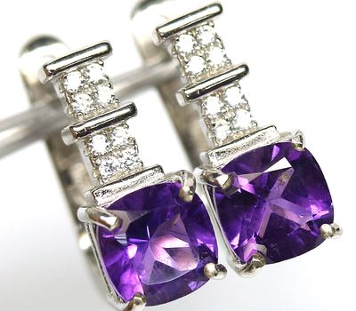 Ametist və CZ ilə bəzədilmiş 925 əyar Gümüş Sırğa. Sırqanın qabaritləri 6.0 x 14.1 mm. Daşların ölçüləri 6.0 x 6.0 - 1.2 mm.