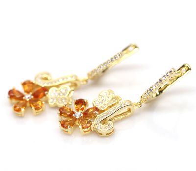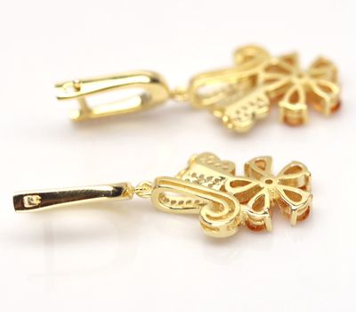 Qızıl sarısı Sitrin və CZ ilə bəzədilmiş 925 əyar Gümüş Sırğa.
