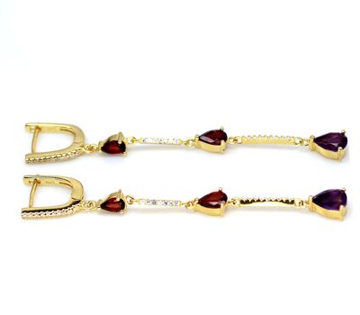 Ametist, Qranat və CZ ilə bəzədilmiş 925 əyar Gümüş Sırğa.