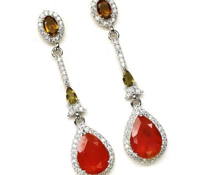 Qızıl sarısı Sitrin və CZ ilə bəzədilmiş 925 əyar Gümüş Sırğa.