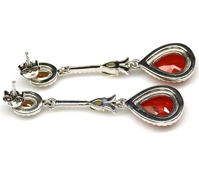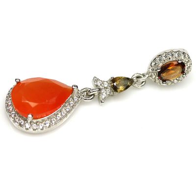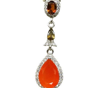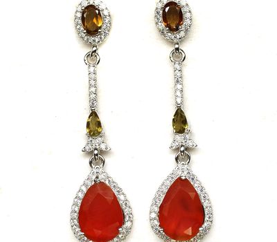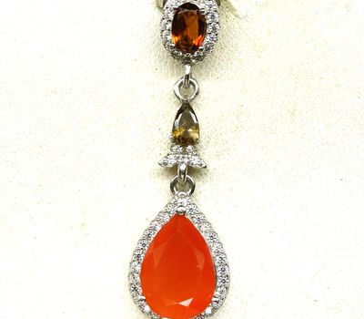 Narıncı Karnelian, Turmalin və CZ ilə bəzədilmiş 925 əyar Gümüş Dəst: Sırğa və kulon.