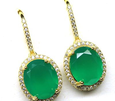 Yaşıl Əqiq və CZ ilə bəzədilmiş 925 əyar Gümüş Sırğa.