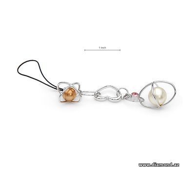 MİSAKİ brendindən mirvari (təbii deyil) və xrustal ilə bəzədilmiş telefon asqısı. Ümumi çəkisi 8,5 qr, Uzunluğu 11,43 sm.